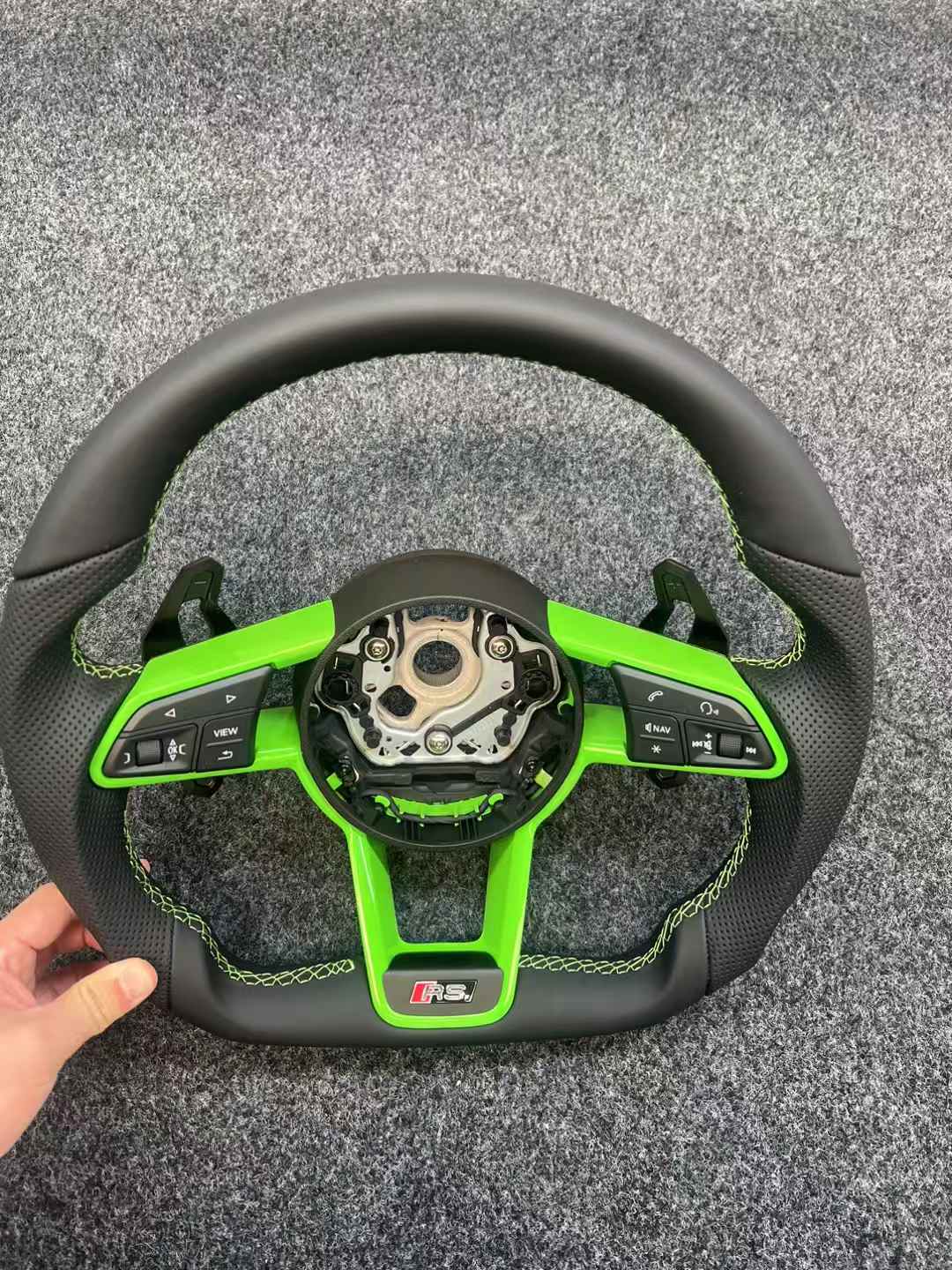 Unleash individuality in your Audi with Velocraft's custom-designed RS-style steering wheel, tailored for performance and personalization.