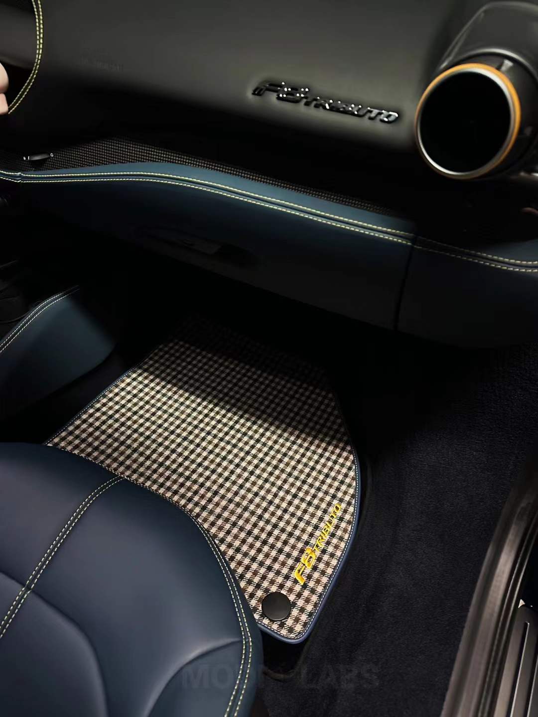 Premium Wool Houndstooth Floor Mats for Exotic Cars (Ferrari, Lamborghini, Rolls-Royce, Bentley, McLaren, Aston Martin, etc.)
