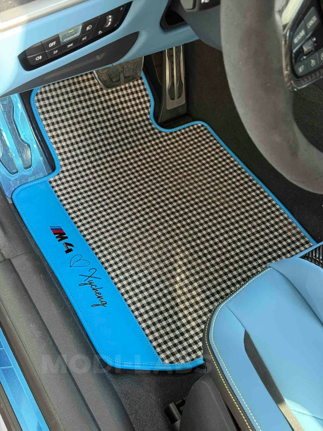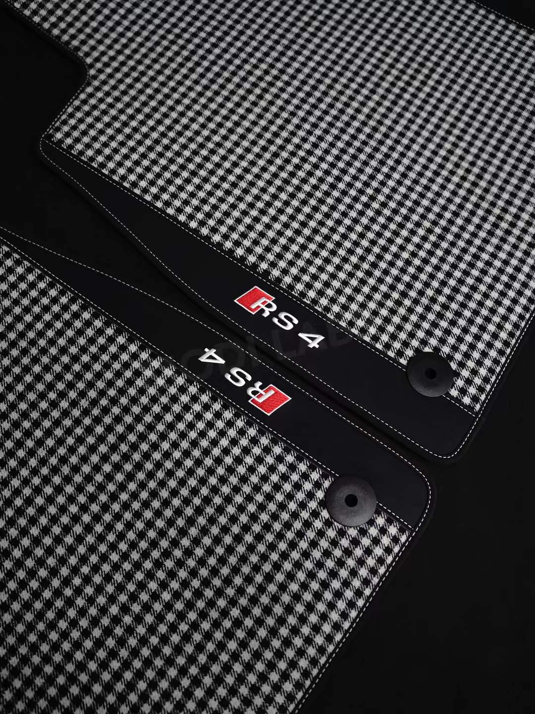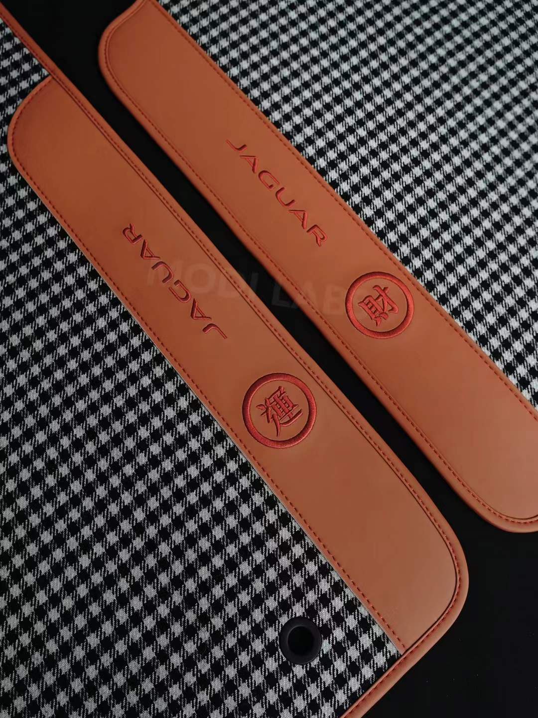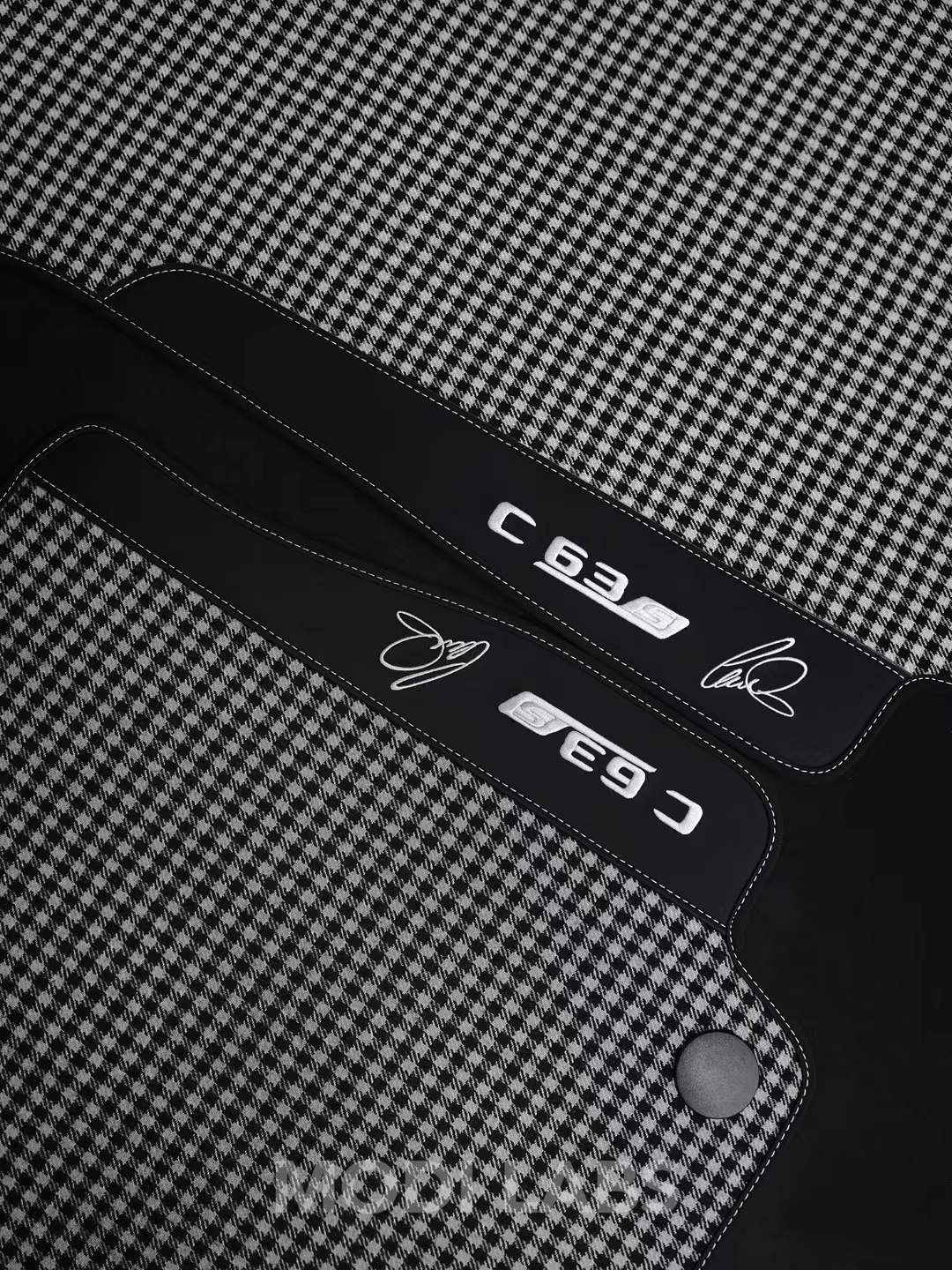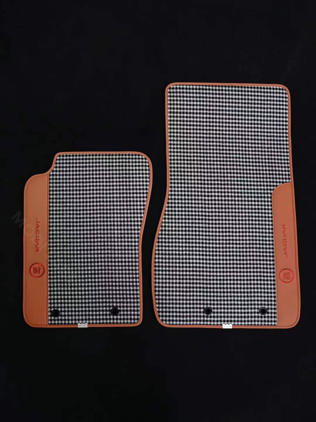 Upgrade the interior of any vehicle with these elegant wool houndstooth floor mats — a perfect fusion of heritage-inspired design, comfort, and personalized craftsmanship. Each mat is meticulously crafted from high-density woven wool in a timeless houndstooth pattern, complemented by genuine Nappa leather borders and custom-stitched logos. Designed to fit a wide range of vehicles, these mats bring refined character and upscale texture to cabins of all kinds, blending classic styling with modern functionality.